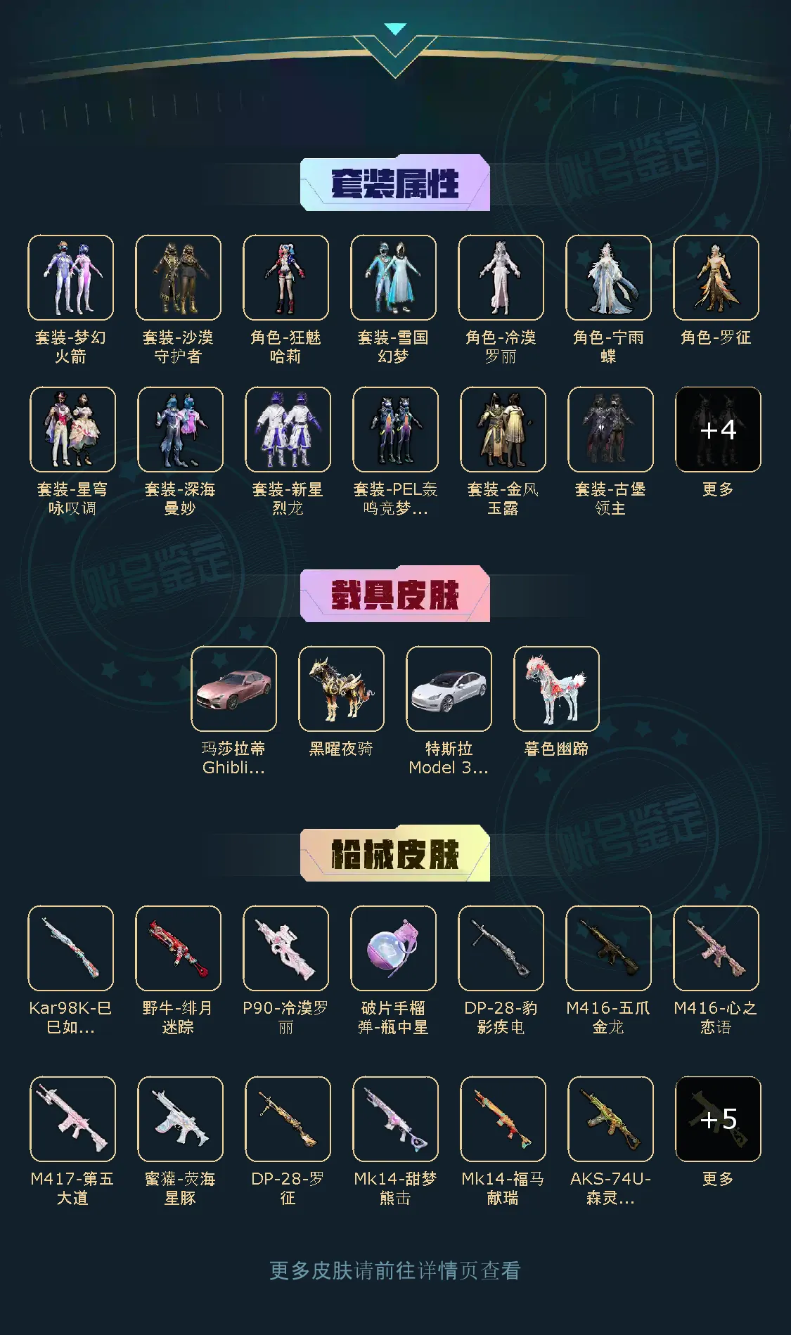 【稀有资产】套装-雪国幻梦/套装-第五大道/M416-五爪金龙/破片手榴弹-瓶中星球/SCAR-L-梦幻火箭/M416-心之恋语/小恶魔头饰/套装-深海小丑鱼/套装-小丑鱼/套装-沙漠守护者/套装-浪漫天命/套装-潮萌小黄鸭/套装-雪山精英/套装-暗影哥特/套装-龟仙人/套装-迅捷狂鲨/套装-软软马卡龙/套装-缤纷假日/套装-青涩年华/套装-圣穹绘梦/套装-东方飞龙/角色-许七安/角色-灵公主/角色-时希公主/角色-乐音/角色-情公主/角色-白光莹/M416-仓鼠灰灰/M416-快乐主宰