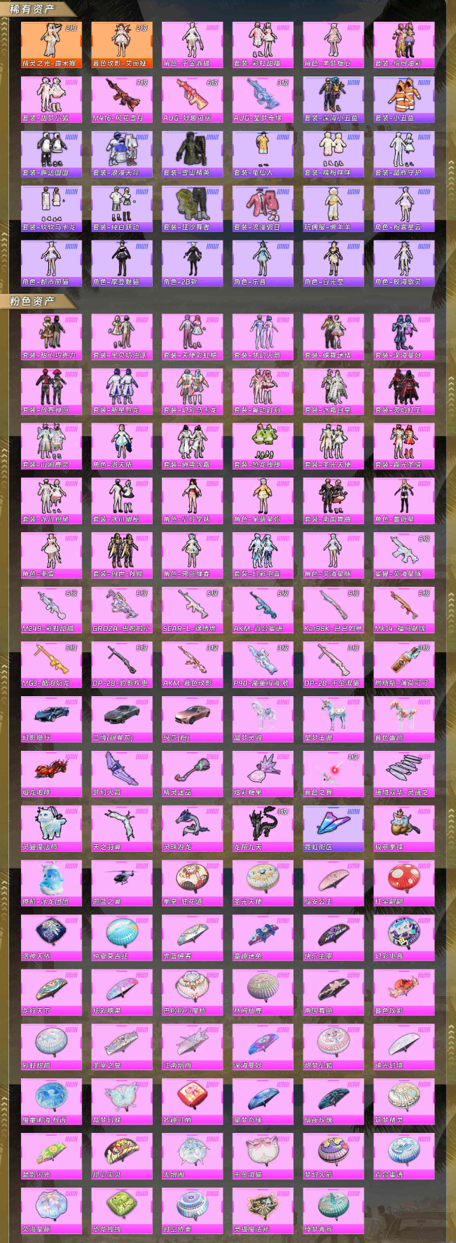 【稀有资产】精灵之光-露米娜[2级]/暮色玫影-艾丽娅[2级]/角色-千金淑猫/套装-彩虹甜喵/角色-羊梦糖心/套装-缤纷油彩/套装-甜梦小狐/M416-风花雪月/AUG-妙趣可丽/AUG-星梦奇缘/套装-深海小丑鱼/套装-小丑鱼/套装-胖达圆圆/套装-浪漫天命/套装-雪山精英/套装-龟仙人/套装-糯粉咩咩/套装-晶辉守护/套装-软软马卡龙/套装-纯白跃动/套装-狂沙舞者/套装-浪漫假日/玩偶服-懒羊羊/角色-粉雾星云/角色-都市丽猫/角色-摩登魅猫/角色-2B战斗服款/角色-乐音/角色-白光莹/角色-鲛海歌灵