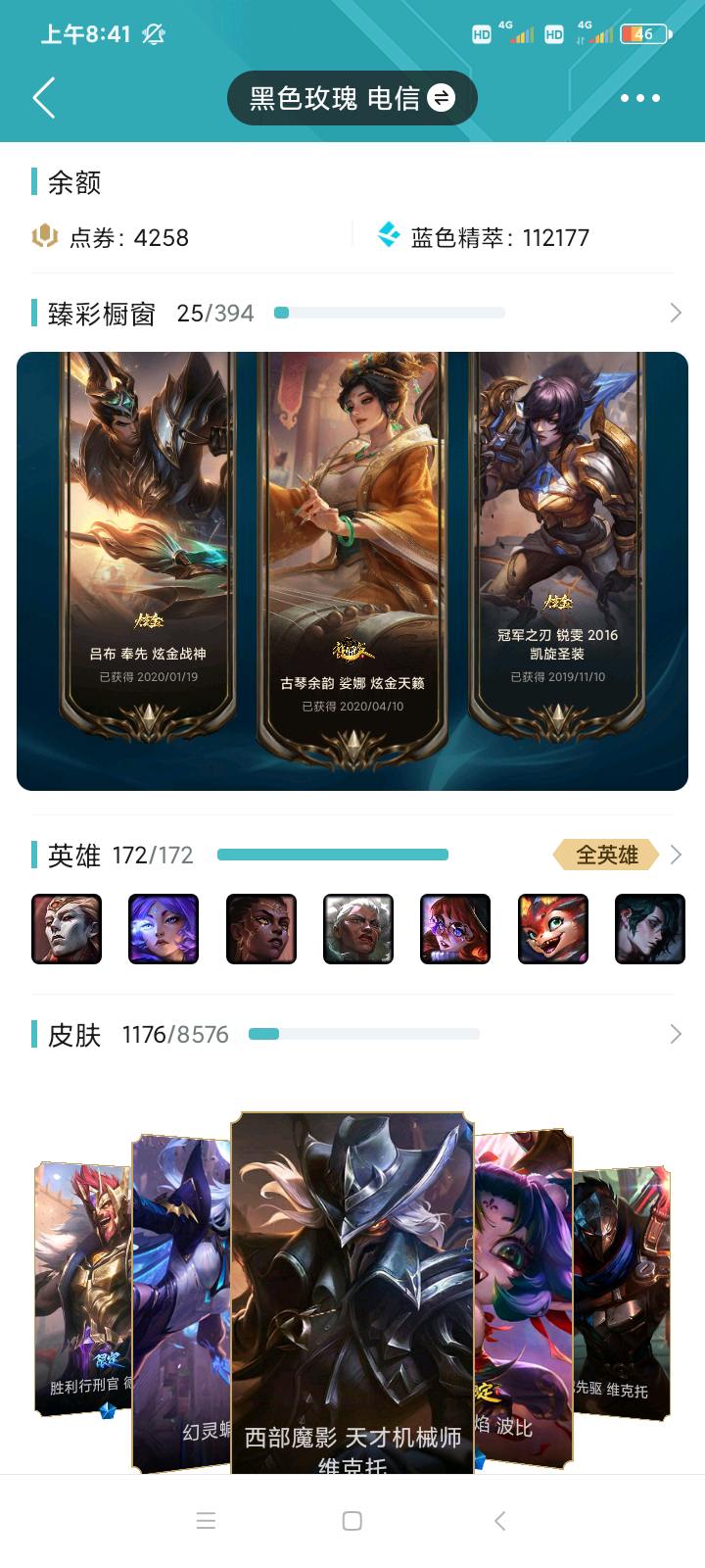 皮肤850+质量都挺高的,希望租了上线把好友删光,预备卖号了,不玩了!