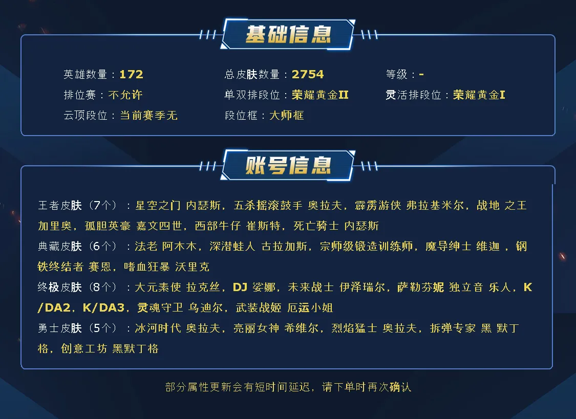 艾欧尼亚2700皮丨1539原皮丨1178炫彩丨323限定丨117神话丨54臻彩