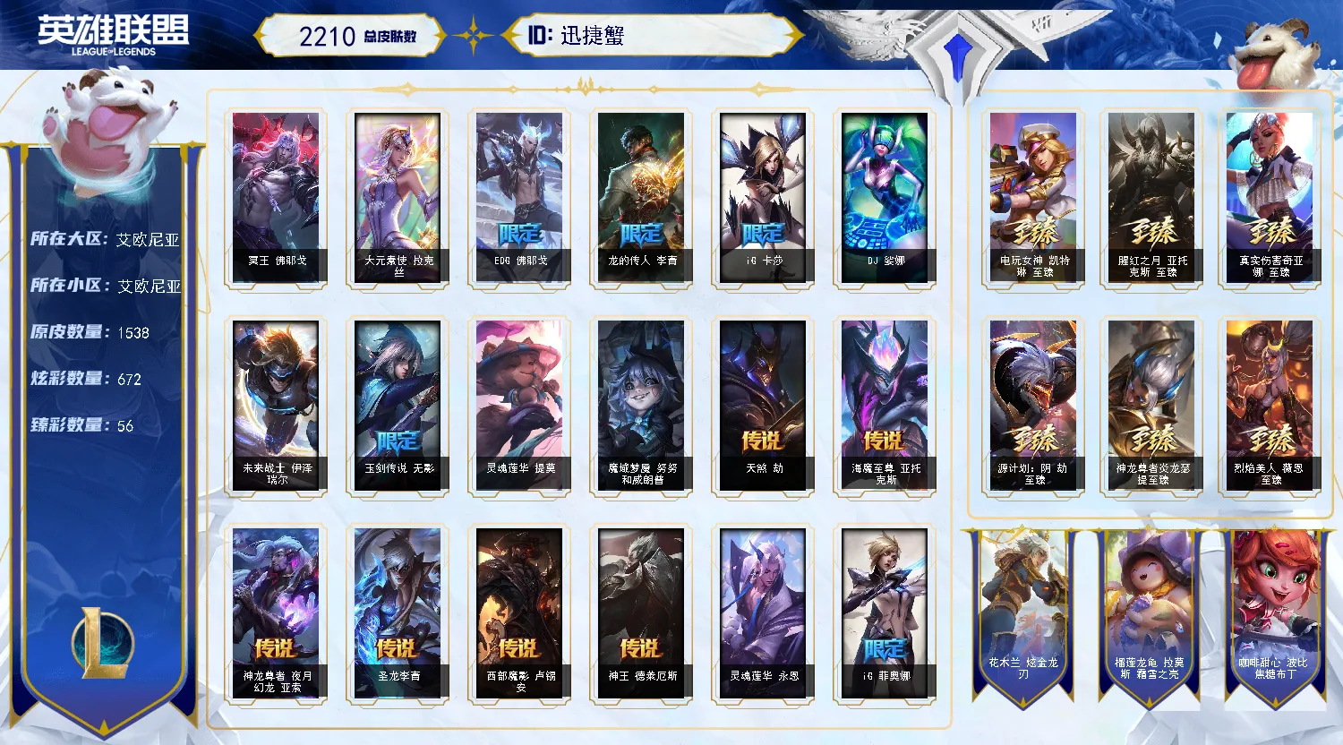 艾欧尼亚1538原皮丨圣堂佛耶戈丨314限定丨56神话丨56臻彩丨664炫彩