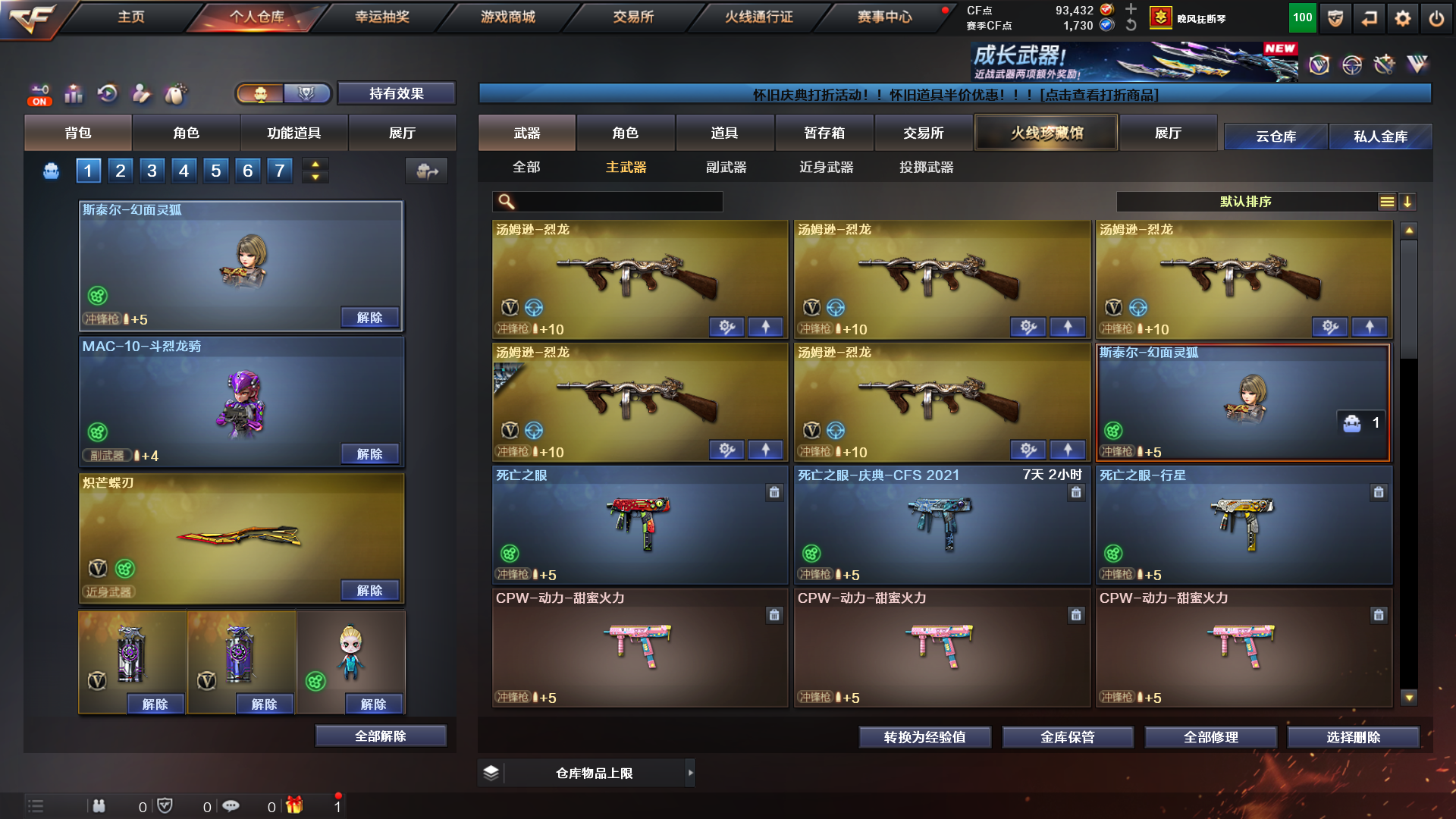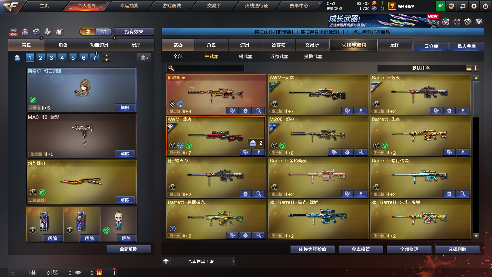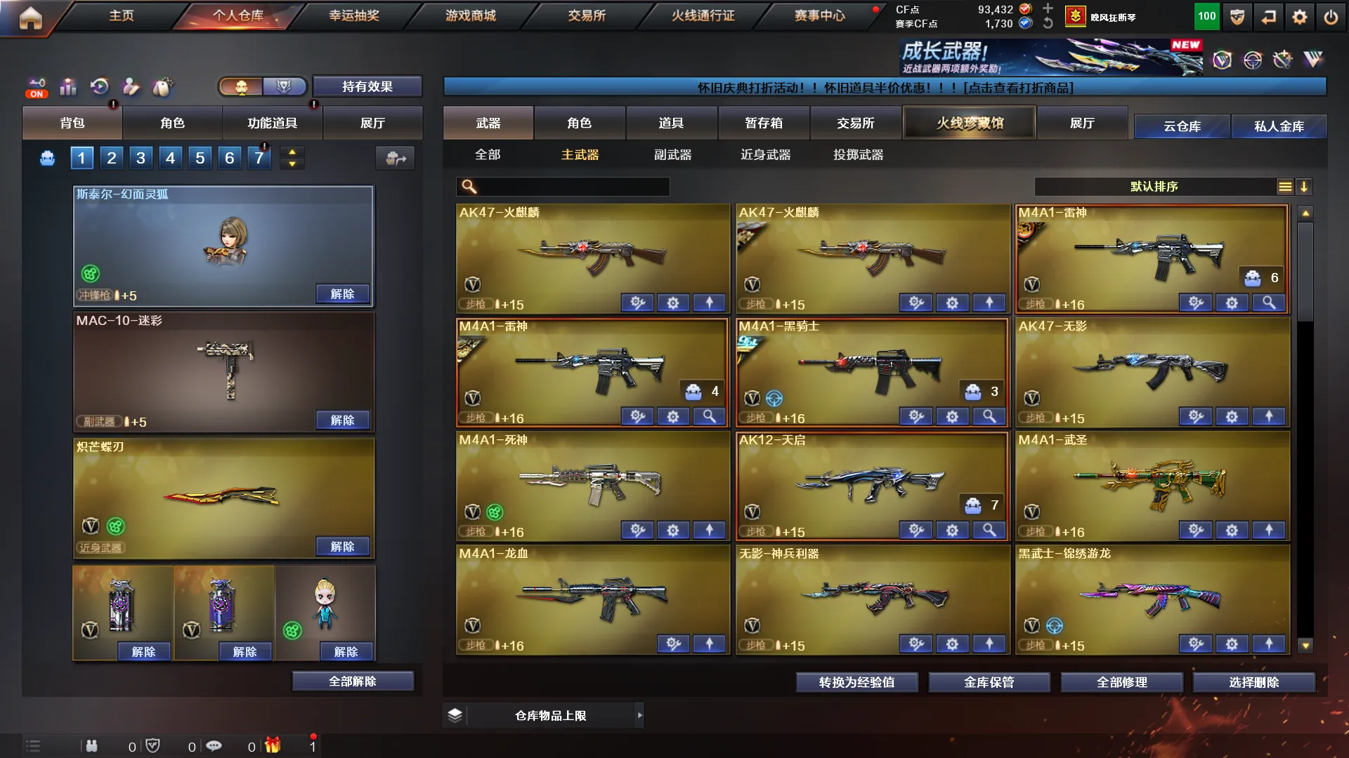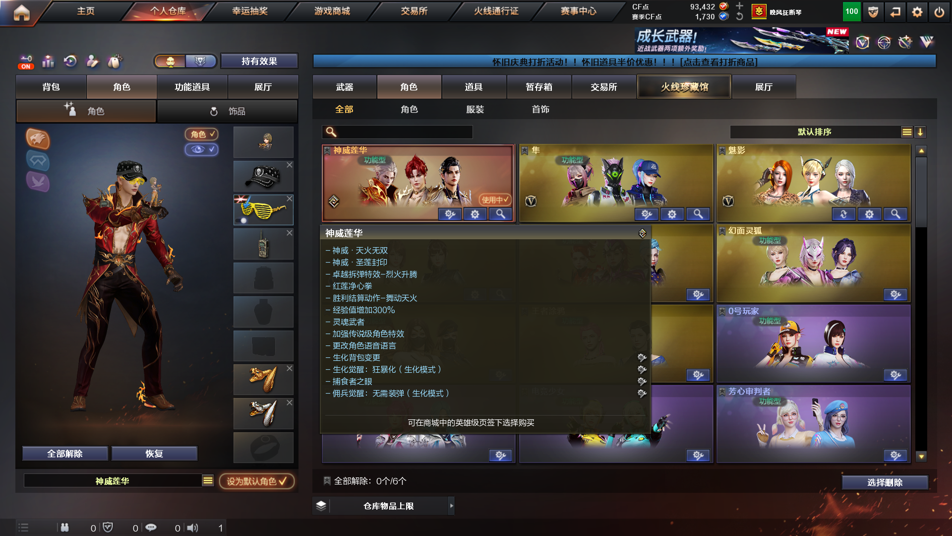 生化爆破全装、传说神威莲花四防、传说幽瞳、四防隼角色、八面玲珑、炽芒蝶刃×2、斯太尔幻面灵狐5烈龙、四炼狱、雷神音效卡等所有道具弹夹全拉满不缺样,觉得不错的给个好评收藏起来,谢谢!