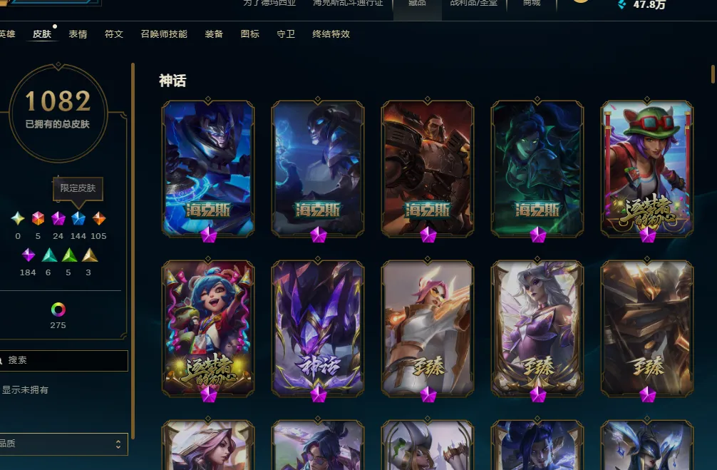 - 神话皮肤数量: 24