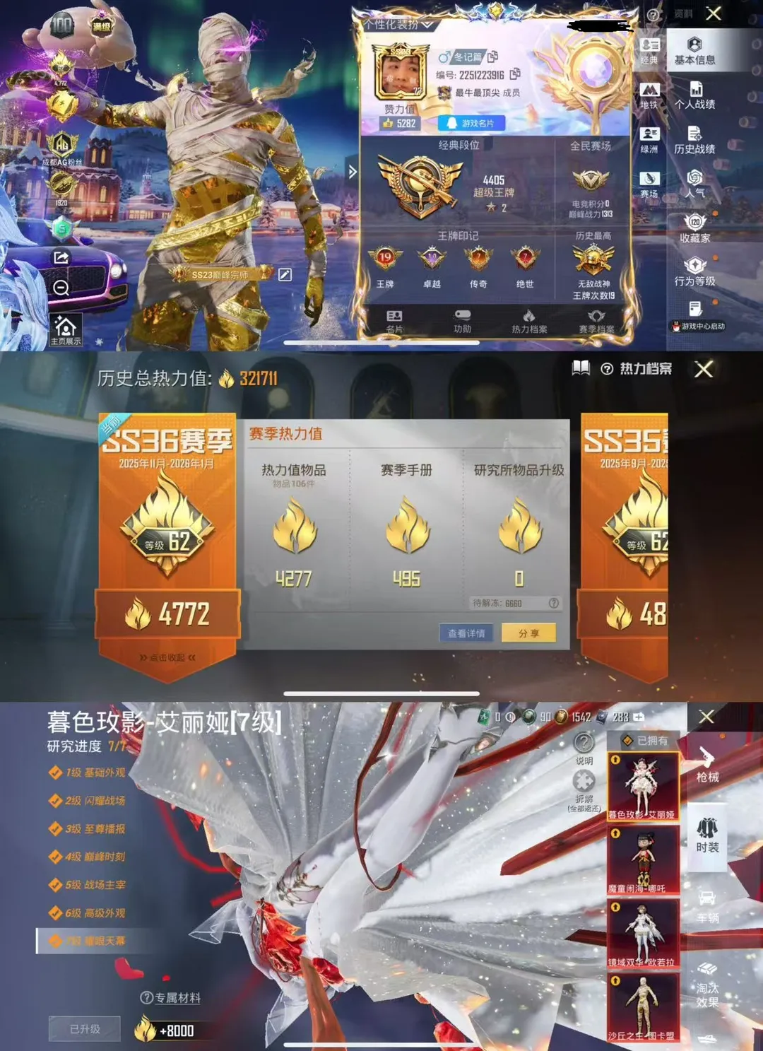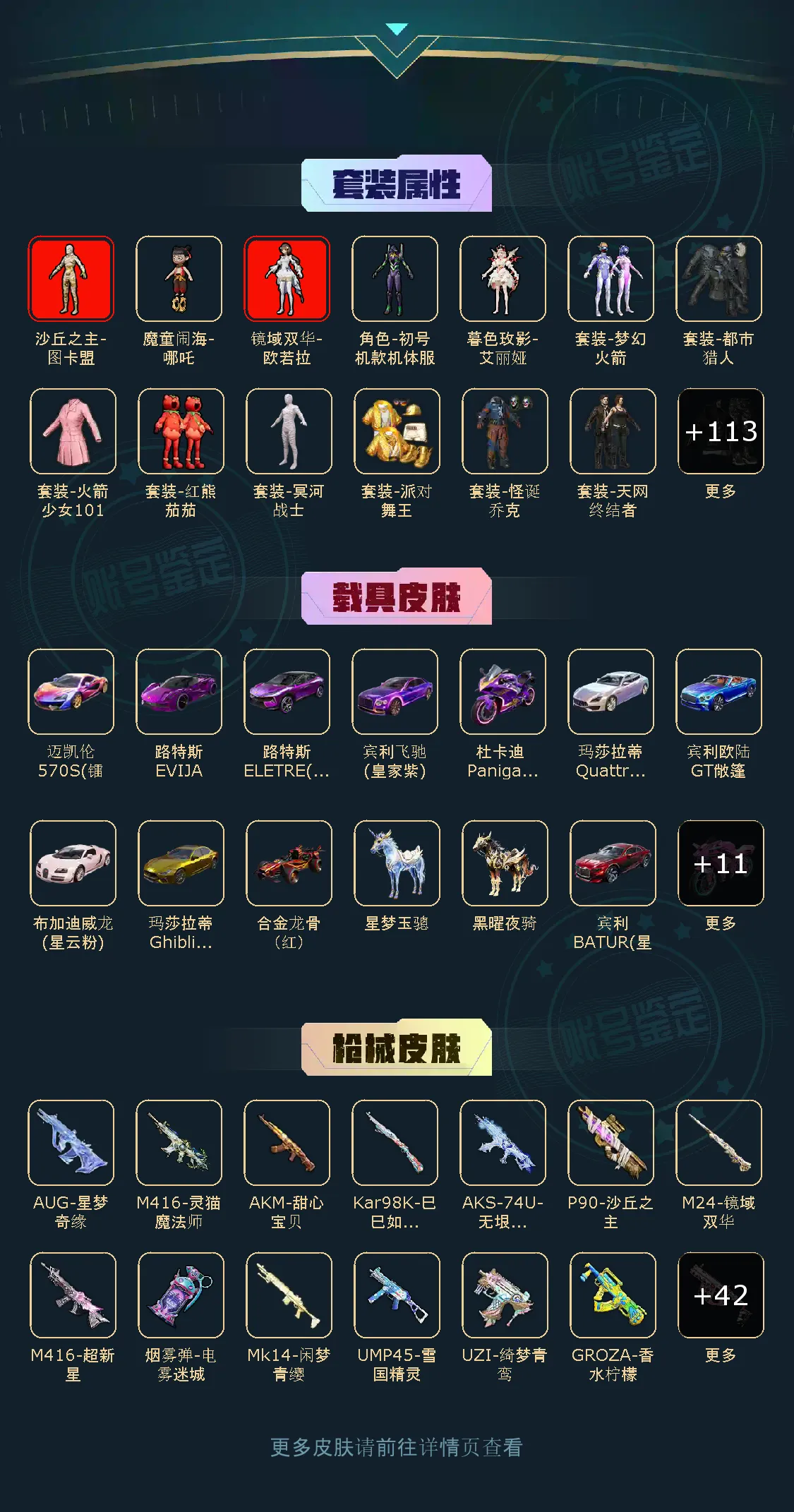 荣耀皇冠Ⅲ116粉,24载具,440套装,20王牌印记,无敌战神历史最高段,328606热力值 平底锅-仲夏莫吉托/平底锅-林间仙鹿/撬棍-永恒法杖/镰刀-幽影之判/M416-灵猫魔法师/AKM-甜心宝贝/SCAR-L-梦幻火箭/AUG-星梦奇缘/M416-电玩时刻/AUG-星之彼岸/M762-甜心娃娃/M762-激战未来/GROZA-香水柠檬/M416-暖熊萌萌/M416-心之恋语/M16A4-垂柳戏鸭/AKM-炫紫旋律/SCAR-L-彩装战姬/GROZA-焦糖拿铁/M416-超新星/AKM-梦之光华/SCAR-L-魔童闹海 哪吒/SPAS-12-蜜语绒猫/SPAS-12-音爆索尼克/M417-第五大道/Mk14-闲梦青缨/SLR-暗夜玫瑰/Mk14-福马献瑞/DP-28-暗夜鎏金/MG3-酷泡奶龙/DP-28-圣堂之誓/MG3-洛神天依/M249-绒雪飘舞/DP-28-千金淑猫/M249-蓝莓炮弹/DP-28-豹影疾电/UZI-绮梦青鸾/Vector-飒粉甜心/汤姆逊-怪笑疯兔/P90-甜蜜草莓/Vector-灵感创作师/UMP45-雪国精灵/UMP45-恐龙拽拽/P90-沙丘之主/汤姆逊-冰川粉黛/AKS-74U-无垠阁/爆炸猎弓-雪梅暗香/破片手榴弹-美味星星糖/烟雾弹-电雾迷城/烟雾弹-猫咪绅士/破片手榴弹-粉粉猫爪/AWM-璀璨巨星/Kar98K-巳巳如意/AWM-橘柚倾心/M24-镜域双华/AMR-炫光之旅/玛莎拉蒂Ghibli(金)/特斯拉Roadster(沁心粉)/宾利飞驰(皇家紫)/玛莎拉蒂Quattroporte(幻星粉)/宾利欧陆GT敞篷(深空蓝)/路特斯ELETRE(冰川蓝)/乔治·巴顿战车(辉煌金)/兰博基尼URUS(尊享铂)/路特斯ELETRE(电光紫)/鬼马风驰/快艇-自由的鲸/快艇-塞莎KL27(霓虹粉)/合金龙骨(红)/路特斯EVIJA(电光紫)/布加迪威龙(星云粉)/宾利BATUR(星火红)/迈凯伦570S(镭射紫)/兰博基尼SVJ(尊享铂)/暮色幽蹄/星梦玉骢/赵云玉狮子马/黑曜夜骑/照夜玉狮子/双人摩托-梦幻火箭/杜卡迪 Panigale V4(霓虹紫)/