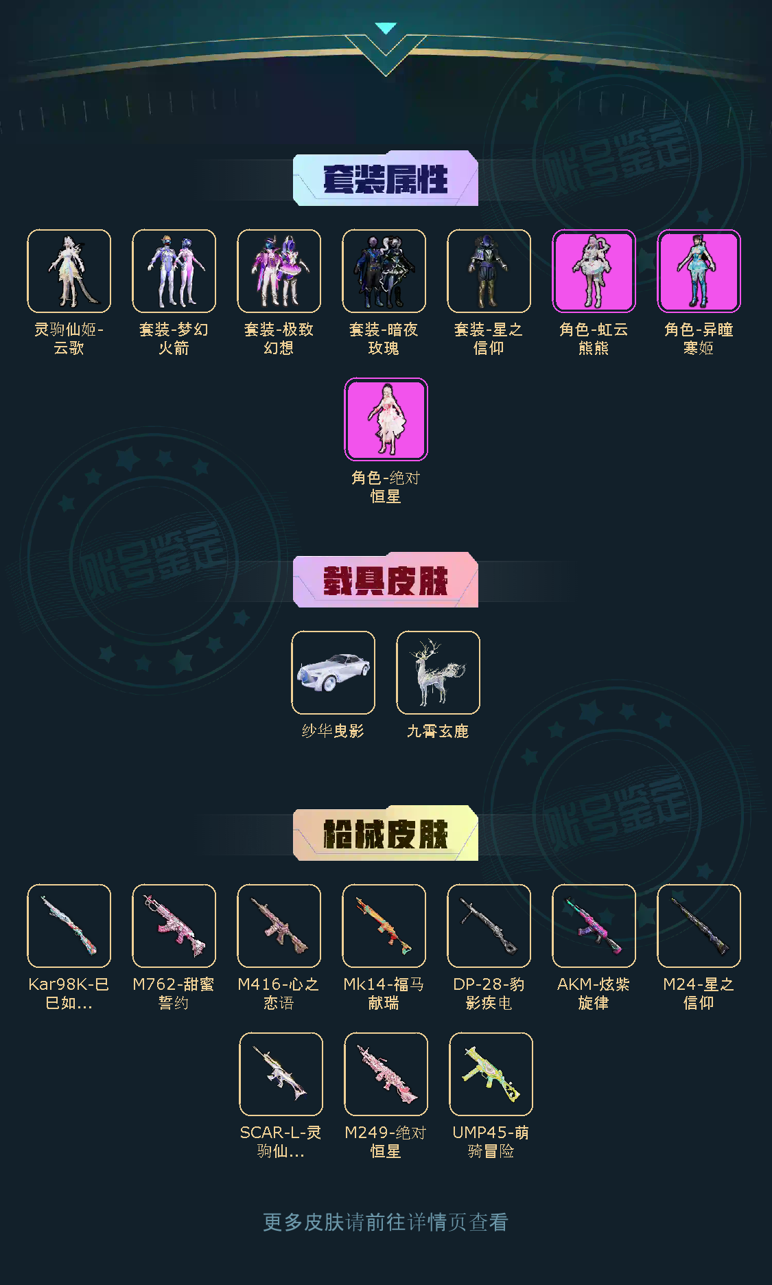 【粉色套装】套装-星之信仰/套装-极致幻想/套装-暗夜玫瑰/角色-异瞳寒姬/角色-绝对恒星/角色-虹云熊熊