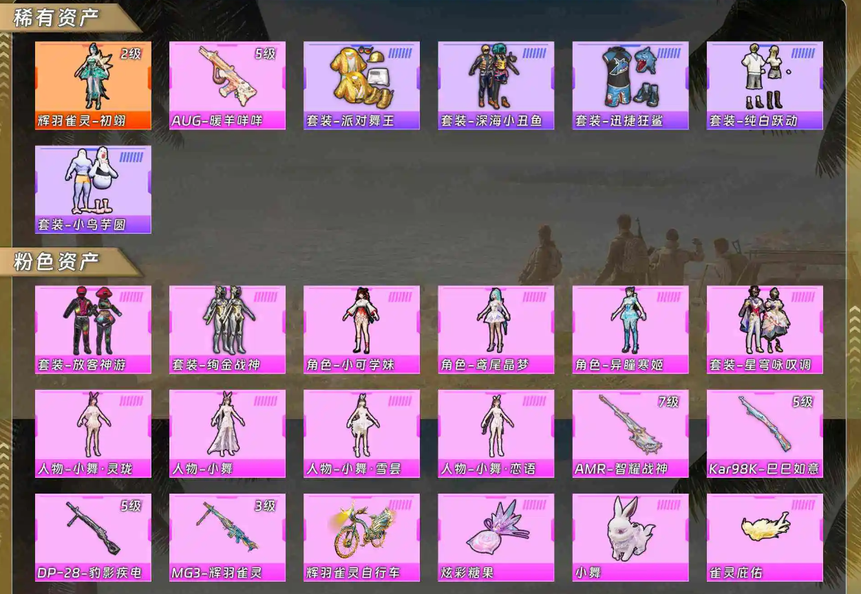 【粉色套装】套装-放客神游/套装-绚金战神/角色-小可学妹/角色-鸢尾晶梦/角色-异瞳寒姬/套装-星穹咏叹调/人物-小舞·灵珑/人物-小舞/人物-小舞·雪昙/人物-小舞·恋语