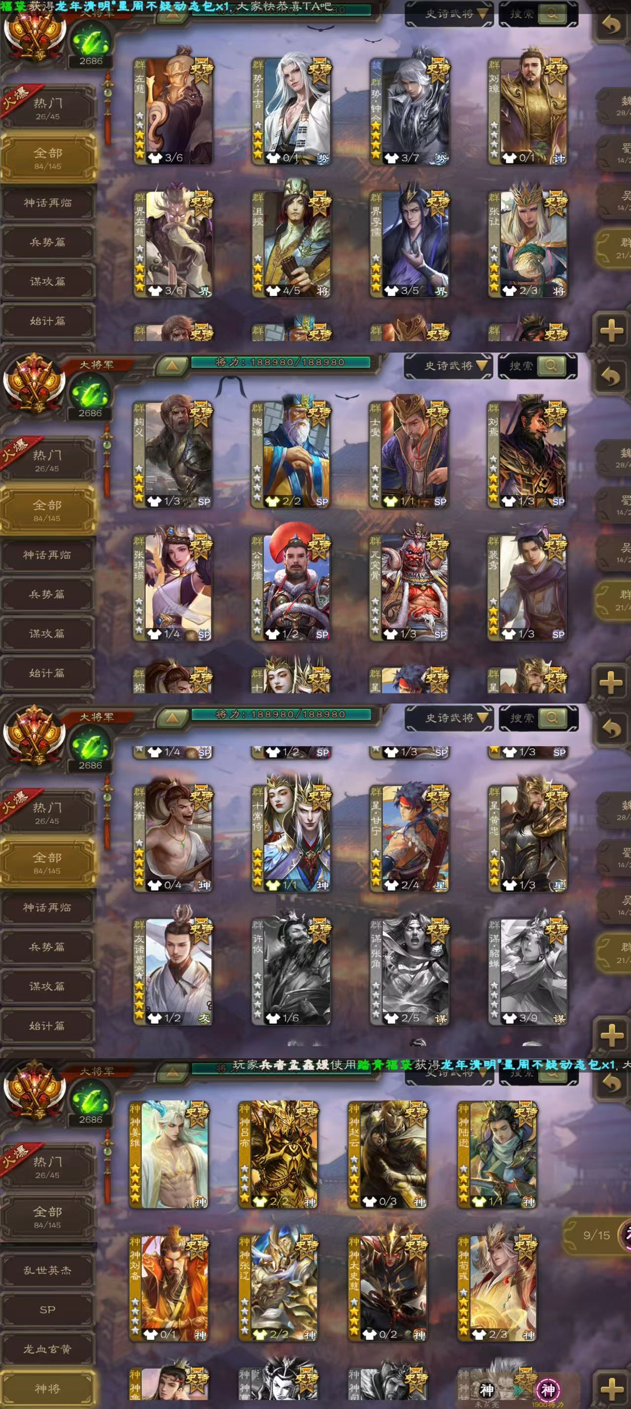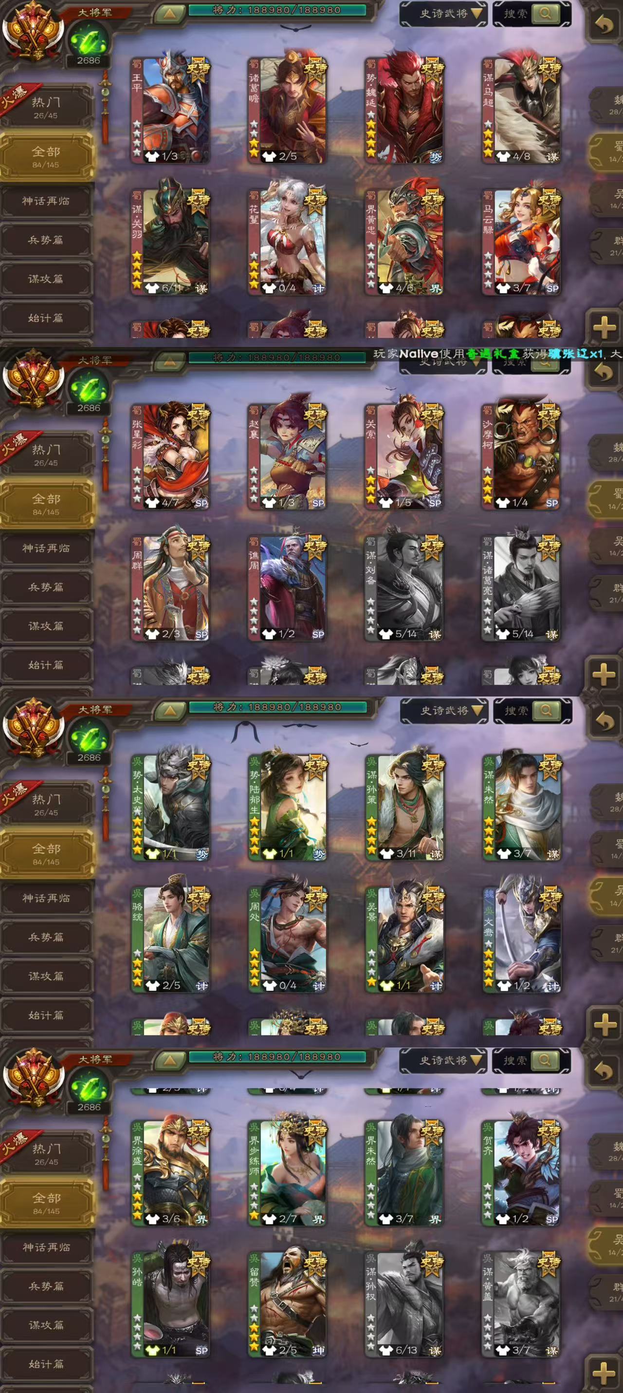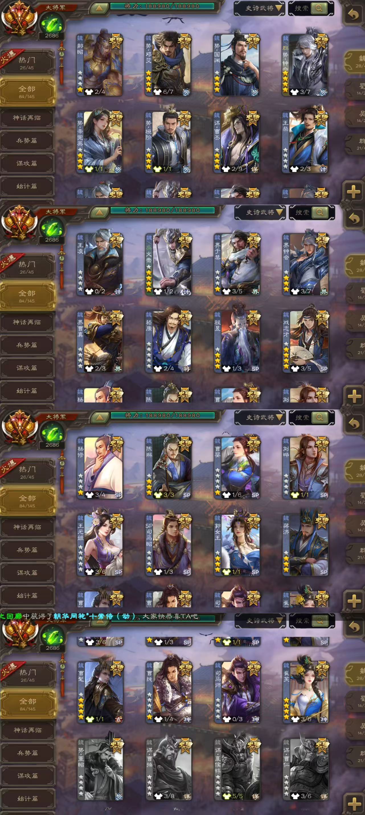 回廊友诸葛亮、至臻势太史慈、谋朱然、新三阴 神姜维势邓艾势魏延、至臻谋孙策、至臻谋关羽、至臻势钟会、至臻曹髦、至臻十常侍、有卡三卡上万 有卡三卡上万 逃跑会封号,恶意毁号逃跑封号拉黑,不能再租本账号,感谢理解。
