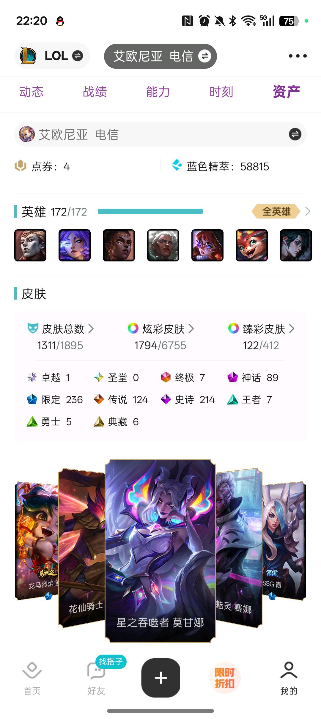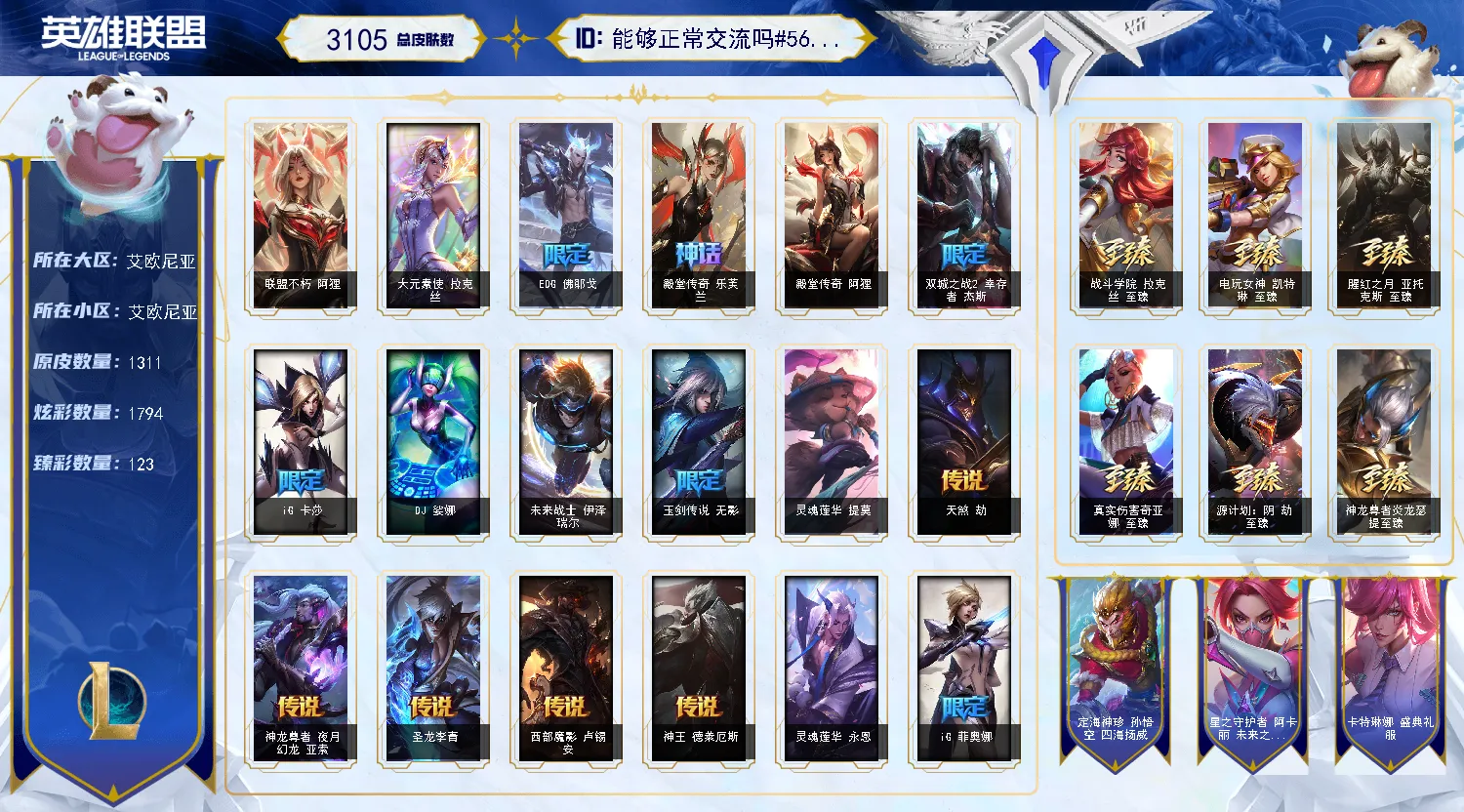 1311皮肤⭐不朽圣堂阿狸⭐122臻彩⭐1794炫彩⭐可排位